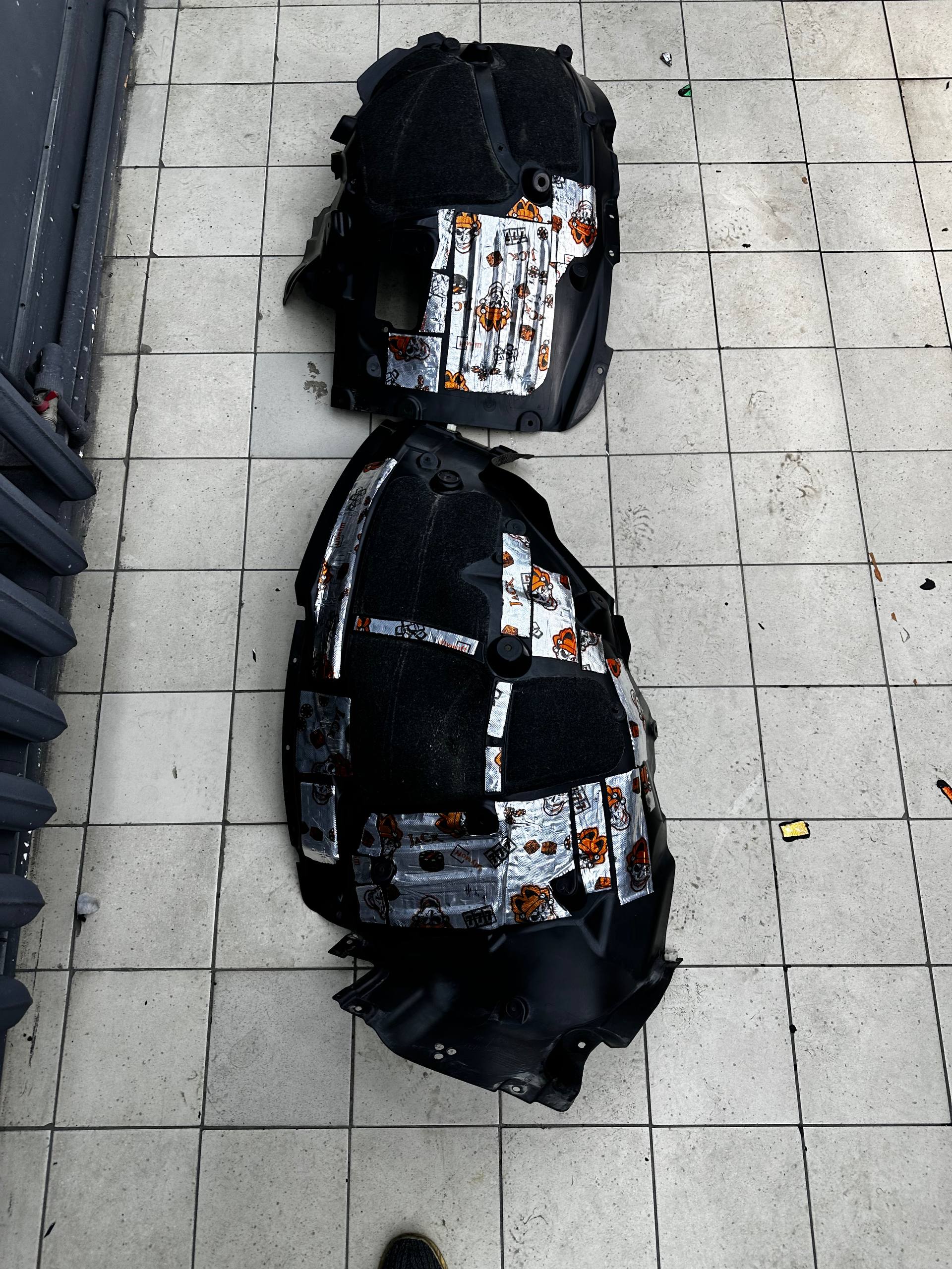 Да, только передних арок! Клиент посчитал, что это избавит от шума. Наша рекомендация - шумоизолировать надо весь пол в салоне и задние арки. Резонанс передается через подвеску к кузову. На металл передних арок, сторона к салону, и в проем между кузовом и крылом в данном случае наносим виброизоляцию Шумофф Super Jack. Это технологичный и эффективный вибродемпфер толщиной 3,6 мм с повышенным уровнем адгезии, что позволяет ему прекрасно работать в такой агрессивной среде как арки.