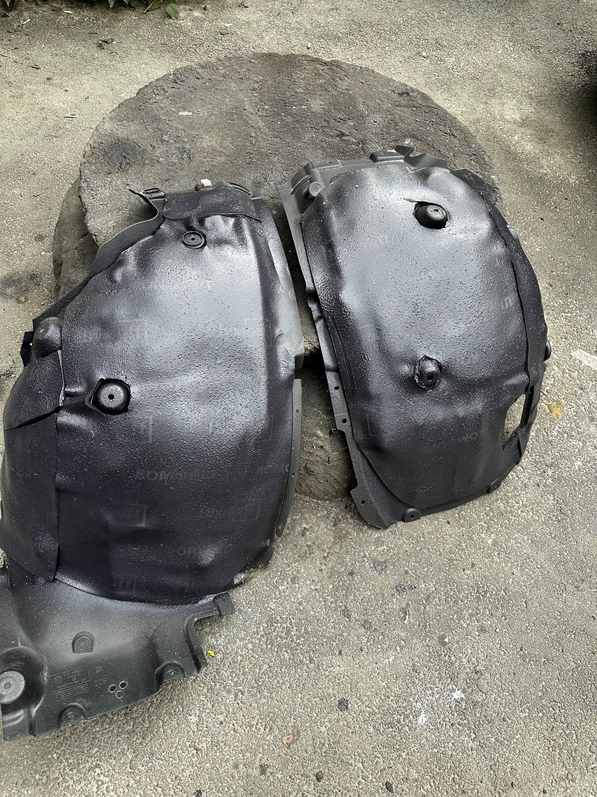 Передние подкрылки пластиковые, на них мы монтируем локально виброизоляцию Шумофф Jack и шумоизолятор Шумофф Комфорт 6. После монтажа материалов на подкрылок и кузов автомобиля заливаем жидким полимером, тем самым герметизируем швы и защищаем шумоизоляционные материалы от механических повреждений. После полного высыхания полимер обретает высокую прочность.