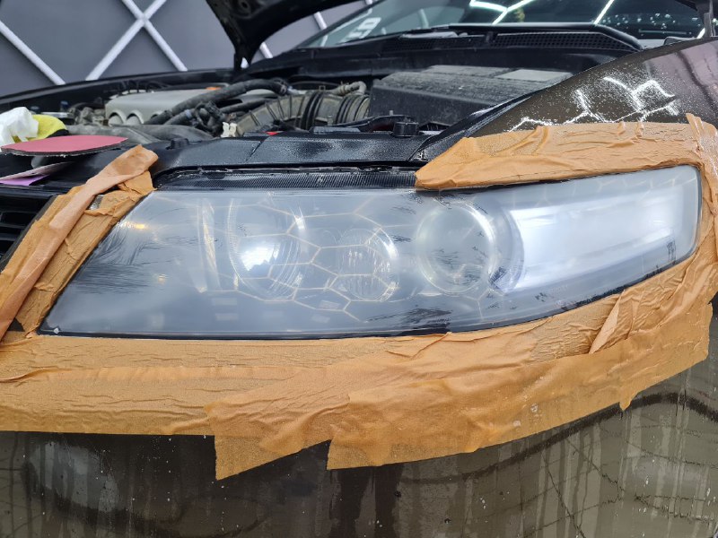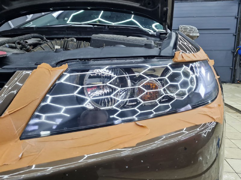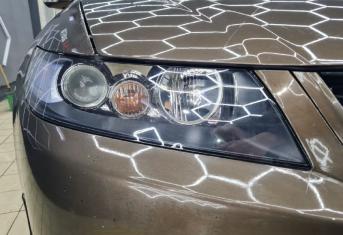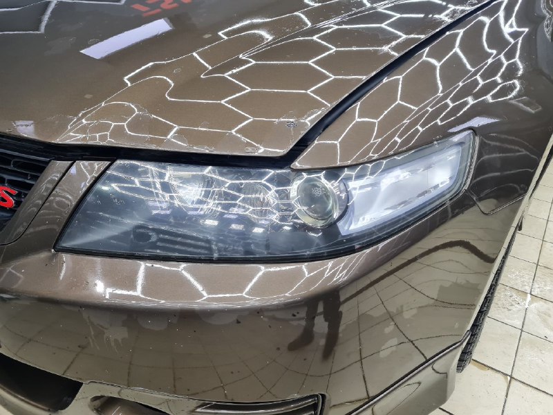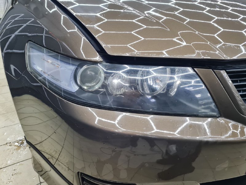 Мы потратили 4 часа на обслуживание Honda Accord, что включало полировку и оклейку защитной пленкой. Важно подчеркнуть, что все процедуры были выполнены без демонтажа фар.