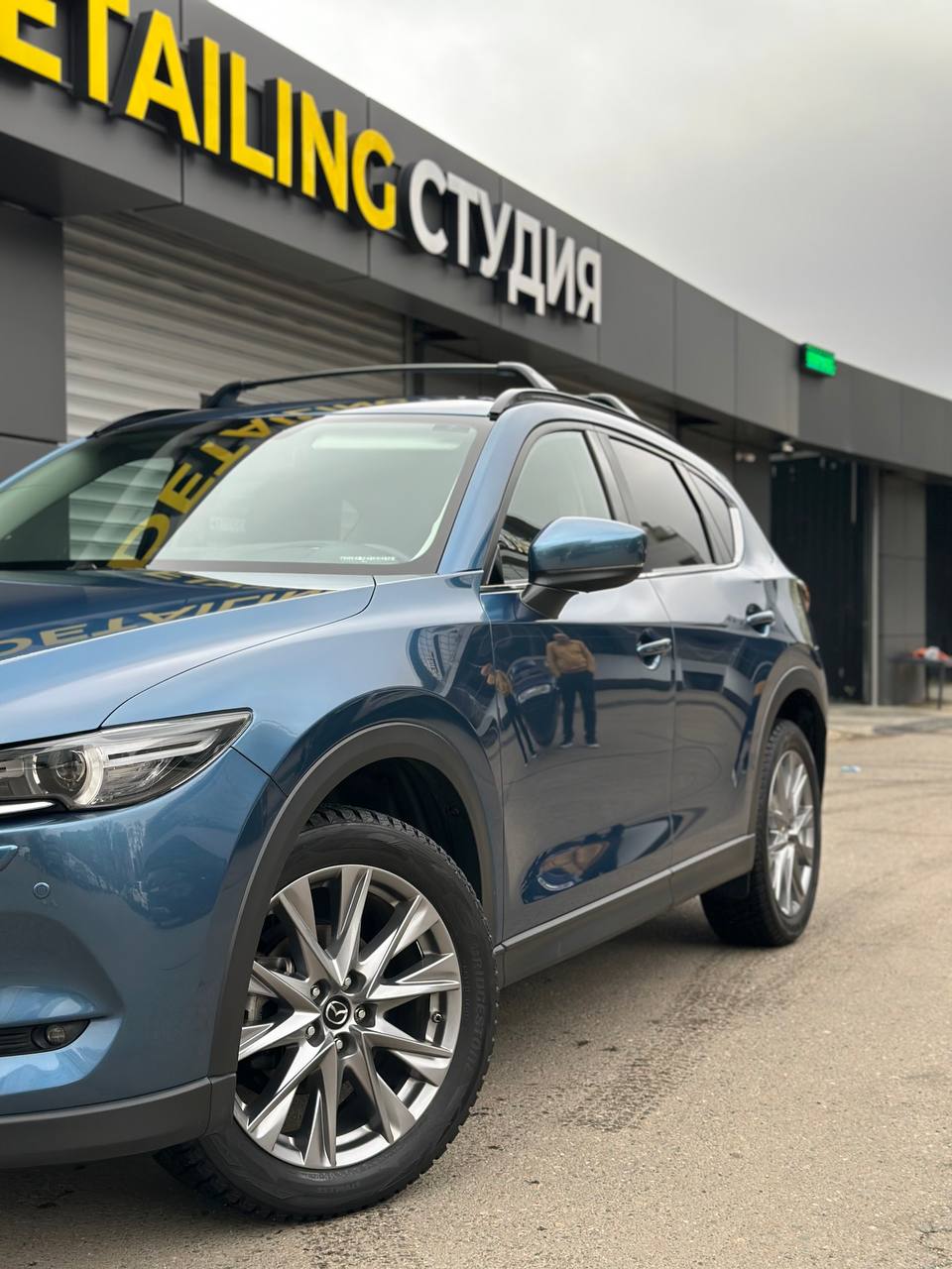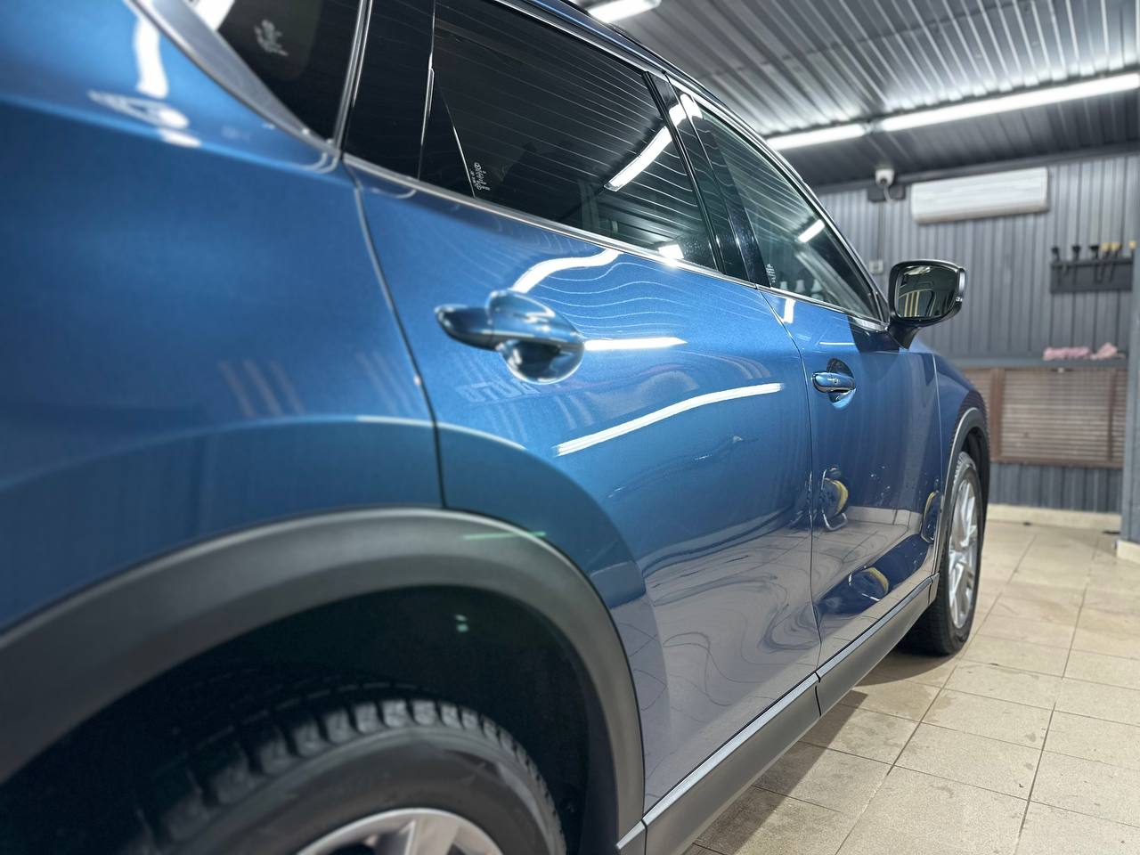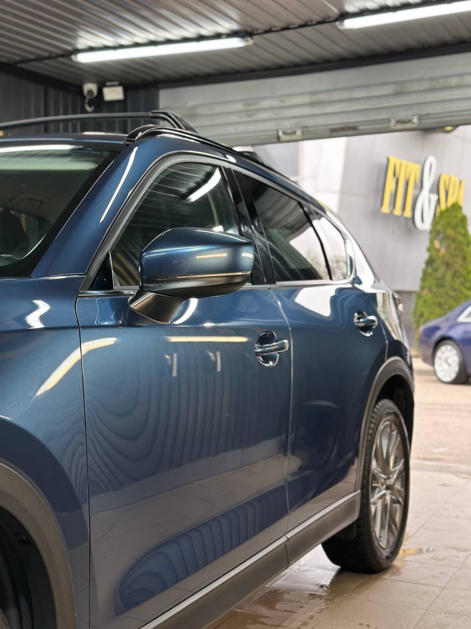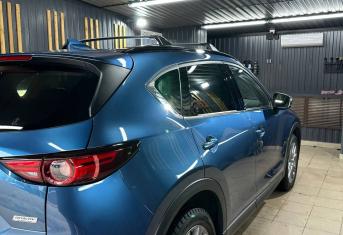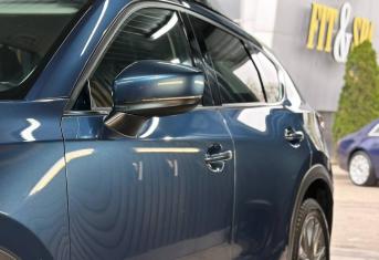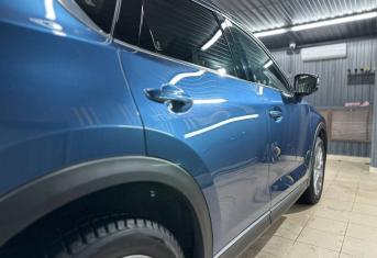 На работы с Mazda CX-5 у нас ушел 1 рабочий день. Все работы проводились без снятия элементов кузова, лишь оклеивание пластика и хромированных элементов.