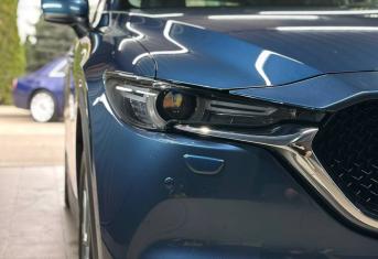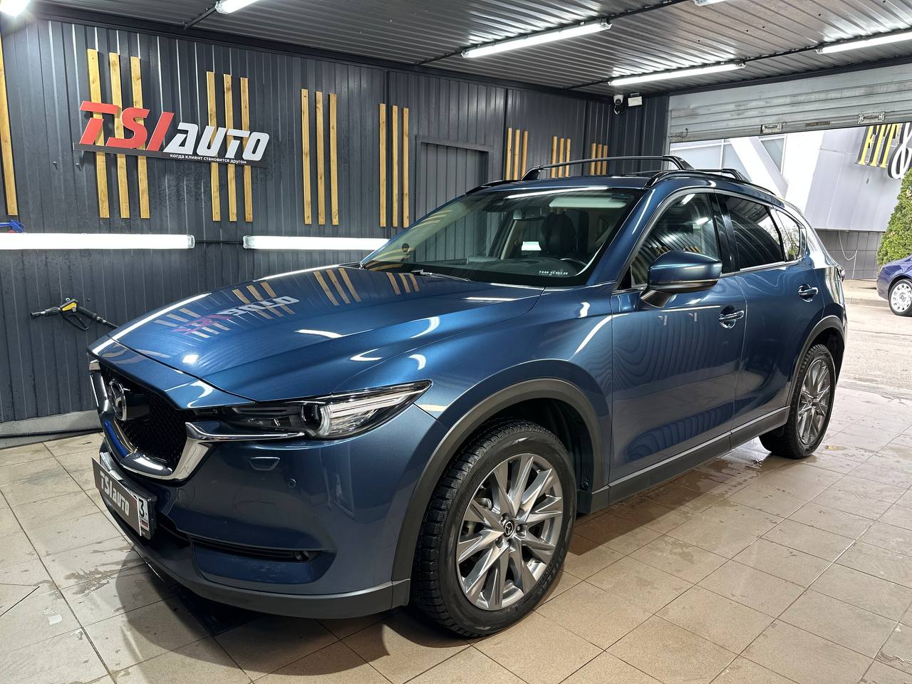Mazda CX-5 получил глубокий темный цвет и блеск, что видно даже собственное отражение.