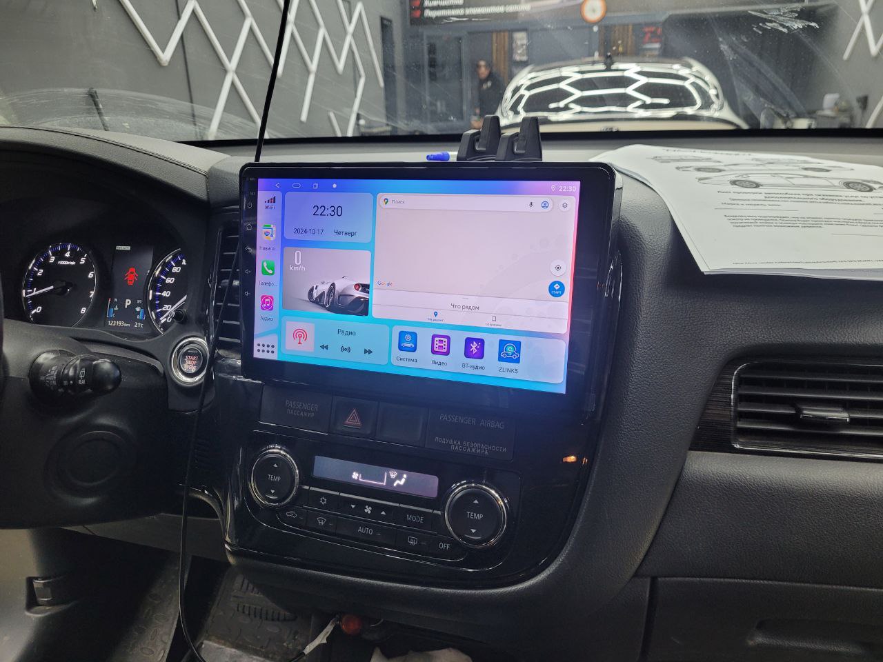 Mitsubishi Outlander XL приехал на работы по замене головного устройства. Установили клиенту головное устройство на Android с подключением камеры заднего вида фирмы Wide Media.