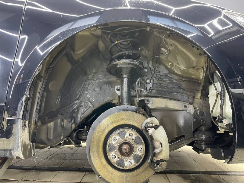 Подготовительные работы начинаются со съема колес, локеров. Все обрабатываемые поверхности предварительно тщательно вымываем от грязи, антикоррозийного средства и обезжириваем. Важно знать, если автомобиль был обработан антикором от официального дилера, то монтаж наших материалов может быть затруднен, а в некоторых случаях вообще невозможен – виброизоляция просто не прилипнет, как правило обработка от дилера жирная или остается всегда не полностью просохшем состоянии.