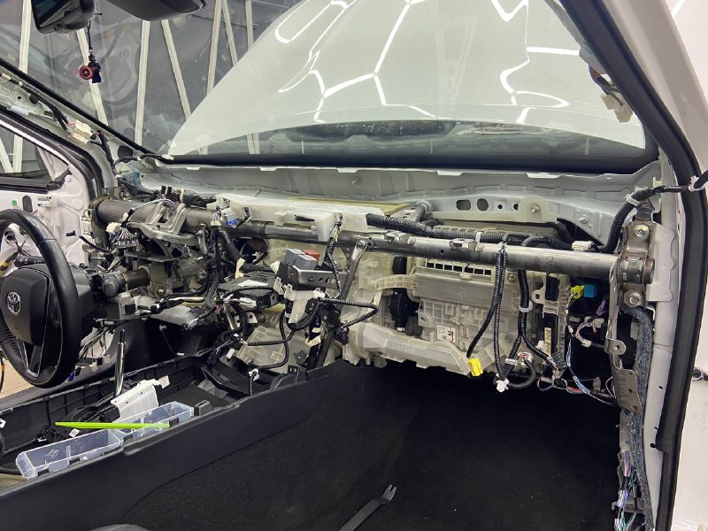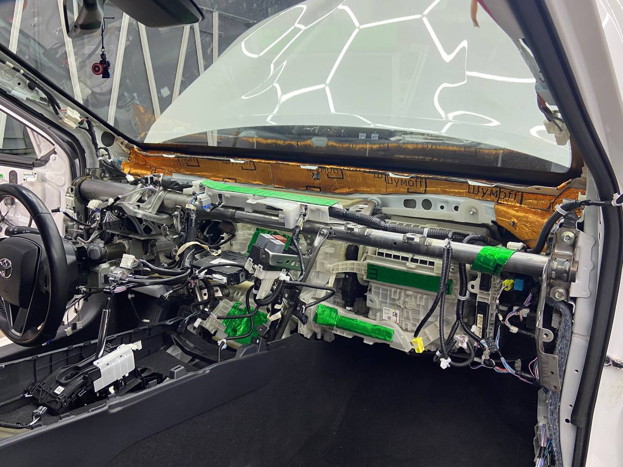 Сегодня мы подготовили фотоотчёт о шумоизоляции торпедо Toyota Camry. Тотальное устранение скрипов пластика и раздражающего дребезга. Точную стоимость выполнения работ на данный момент уточняйте у наших менеджеров. Выполнили эту работу мы за 1 день, благодаря предварительной подготовки материала и слаженной работе мастеров.