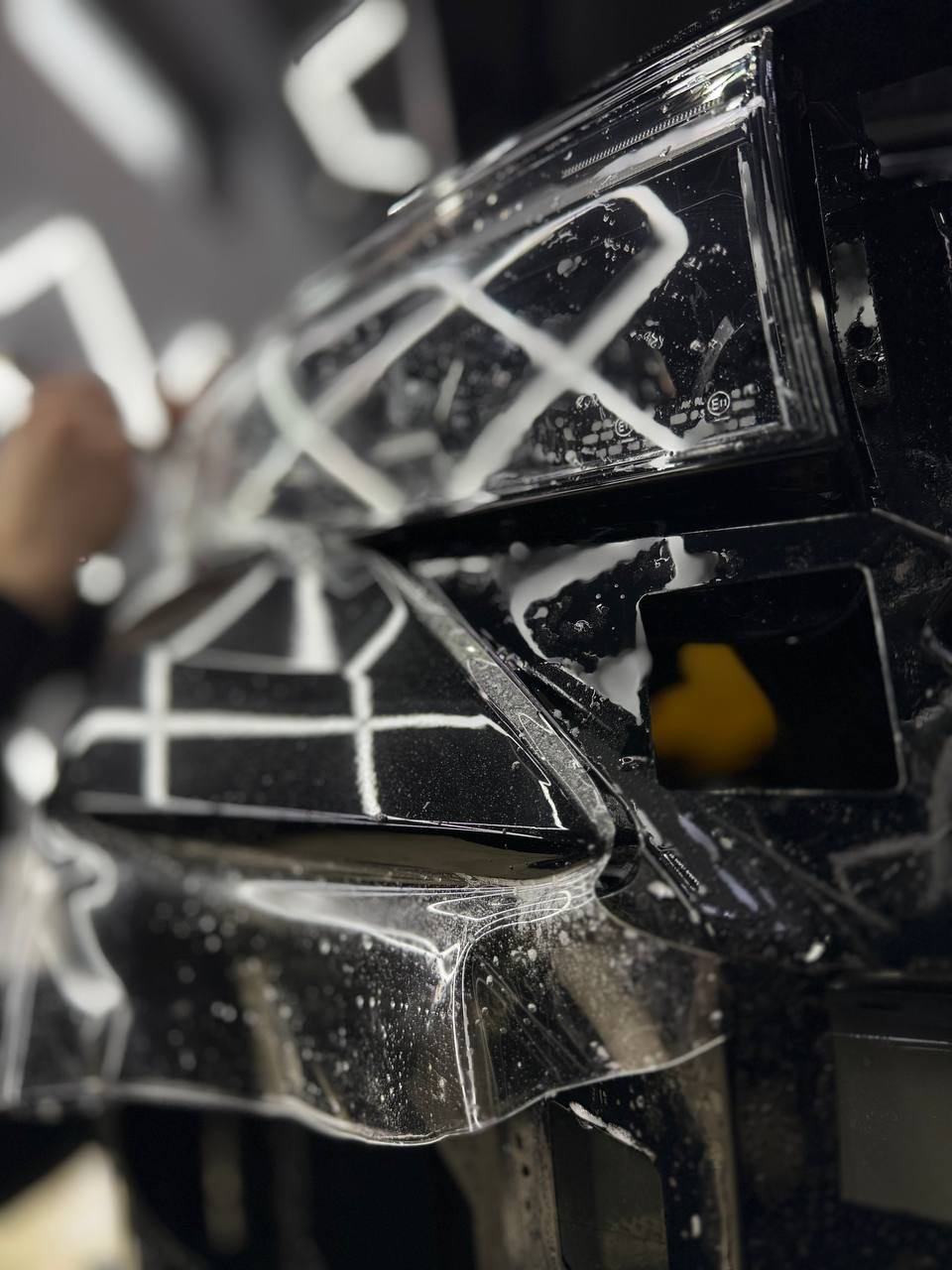 - Арматурные работы – снимаем решетку, бампер из-за его сложной формы. Это необходимо чтобы сделать максимально качественные подвороты пленки.