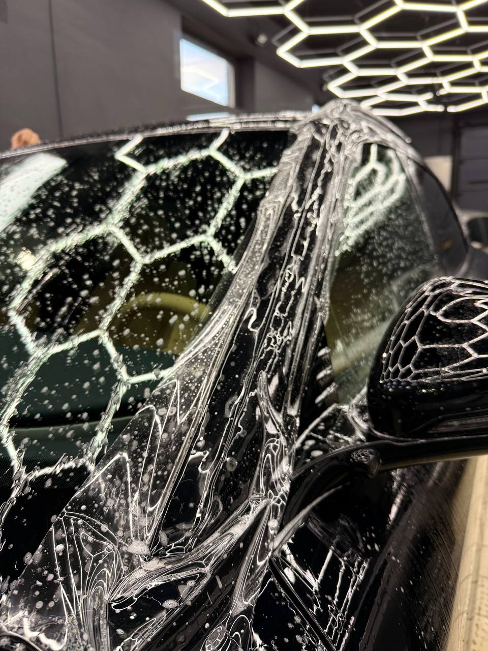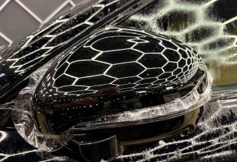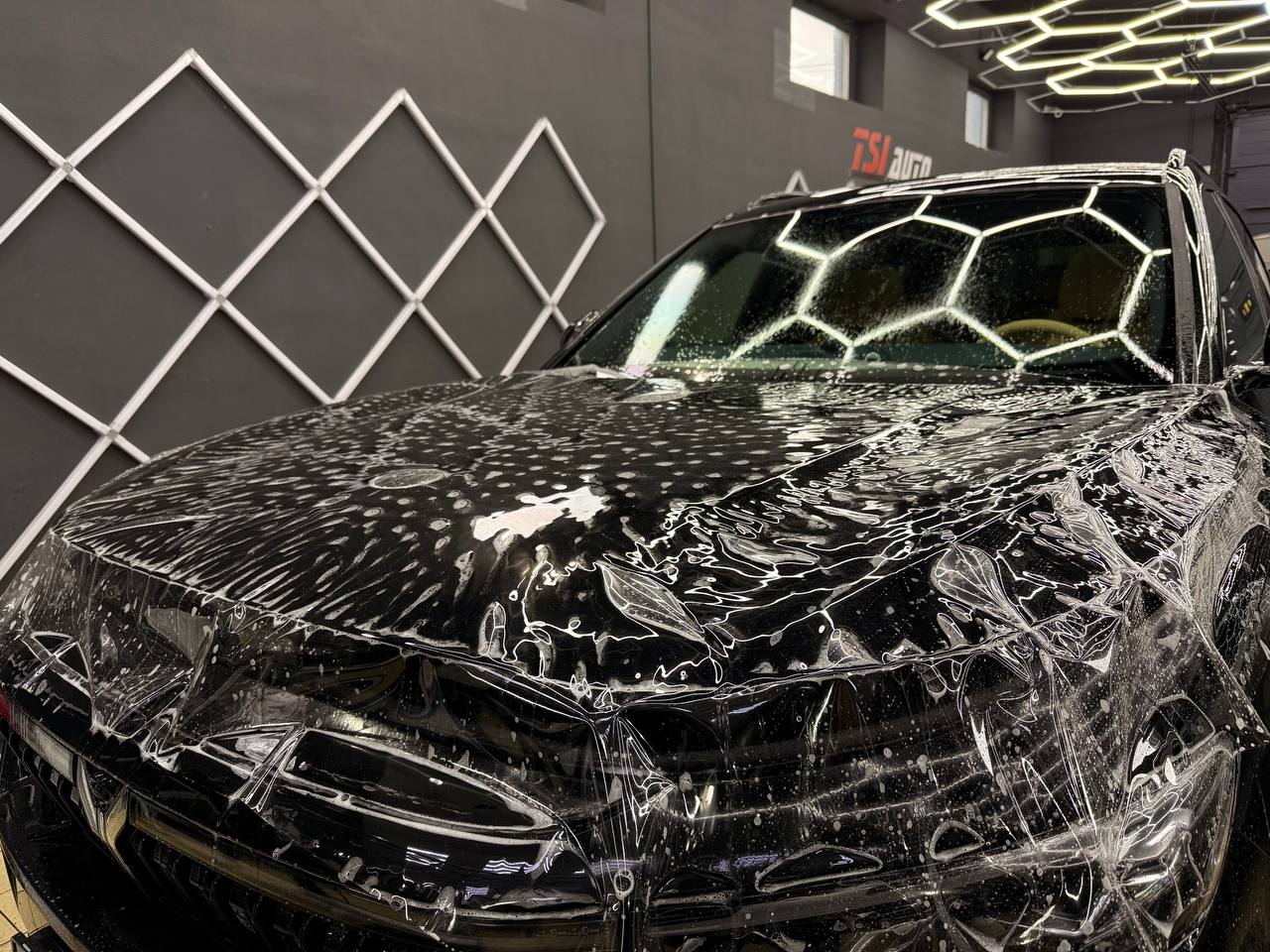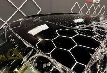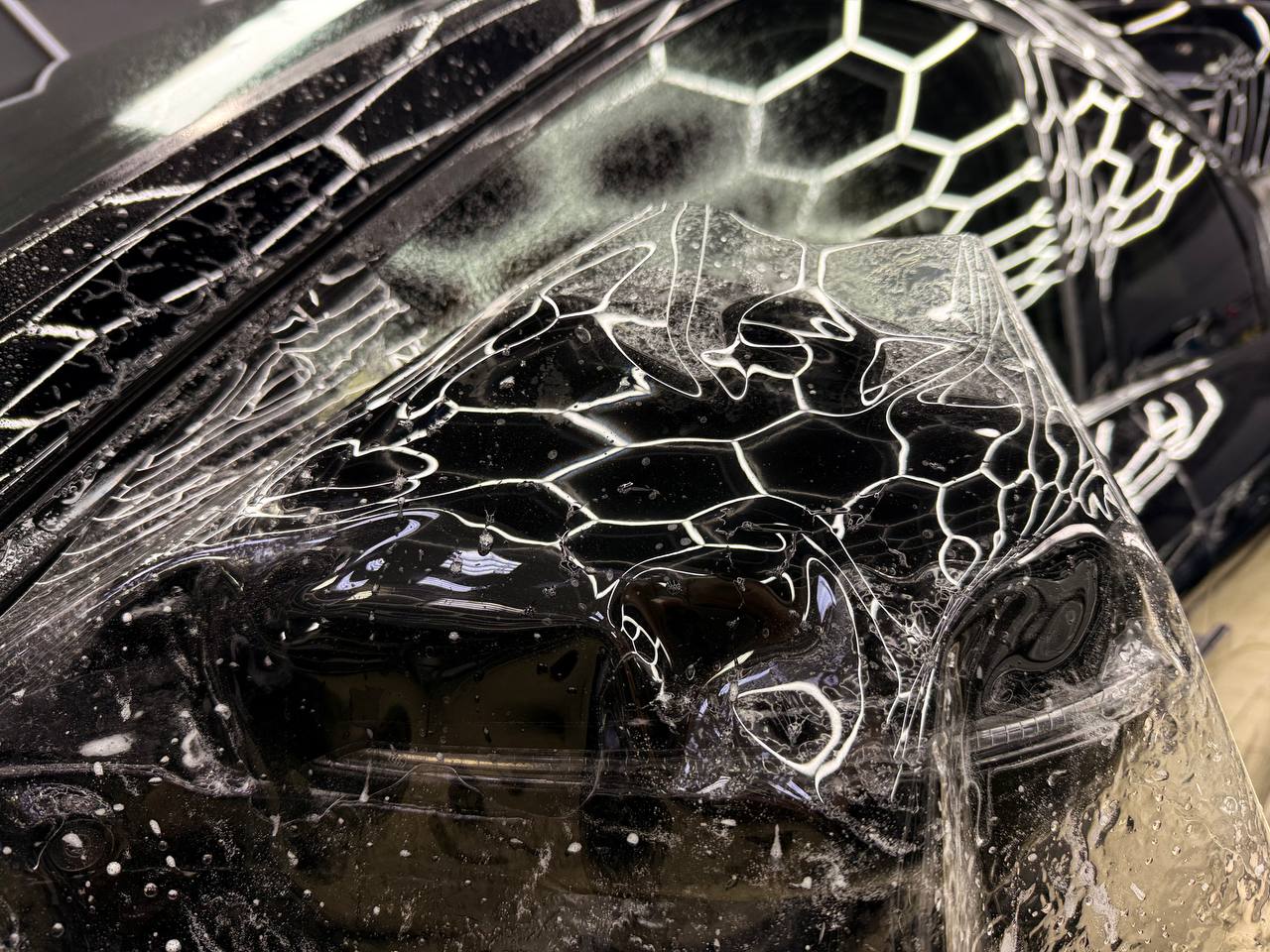 Далее не о процессе, а о конечном результате который получается на данном авто. Автомобиль будет меньше пачкаться, пленка обладает высоким гидрофобным эффектом и грязь не будет задерживаться на кузове. Ну и самое главное это защита, каждый оклеенный элемент выполнен с подворотом пленки по периметру. Сколы и царапины больше не угрожают ЛКП данного автомобиля, и если вдруг произойдет неприятная ситуация с мелким ДТП к примеру во дворе, с большей долей вероятности этот вопрос решиться заменой пленки на отдельном элементе. Так же автомобиль обрел на долго гарантированный блеск, так как пленка имеет самозаживляющий эффект и мелкие риски и царапинки будут затягиваться под воздействием температуры.