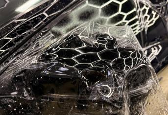 В работе применяем полиуретановую пленку NAR, толщиной 190 микрон. Эта пленка обладает функцией самовосстановления небольших царапин при высокой температуре. Клиент выбрал вариант полной оклейки своего автомобиля.